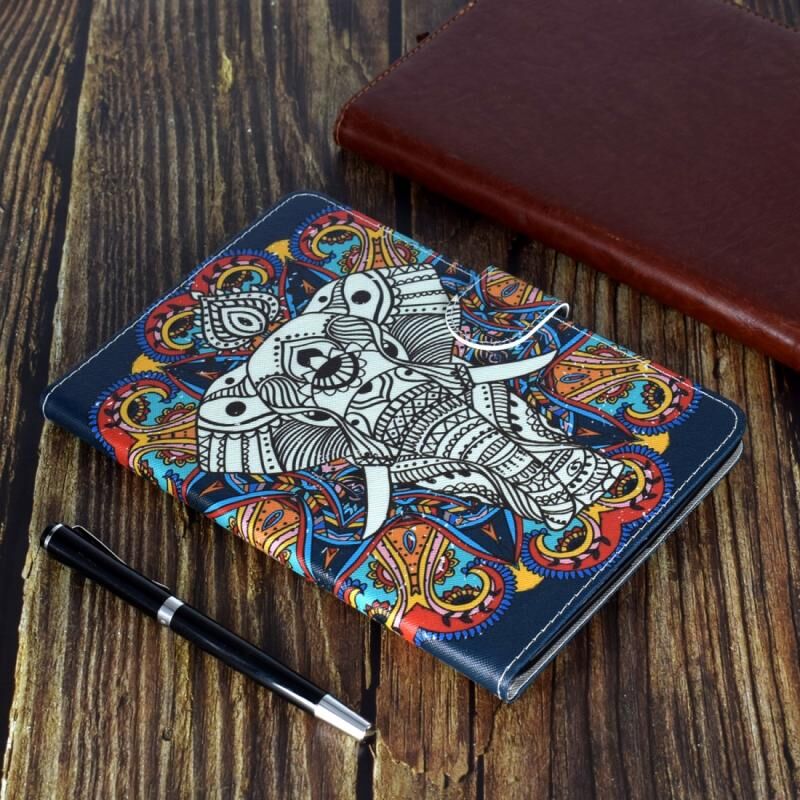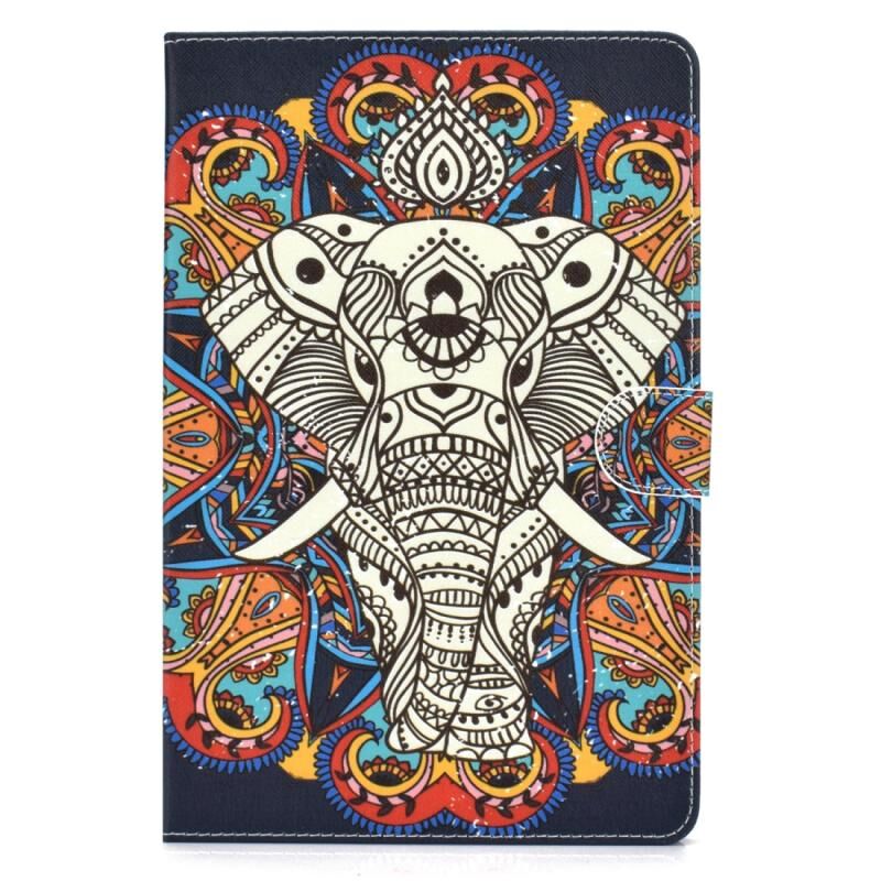 Θήκη για Samsung Galaxy Tab A 10.1 (2019) T510/T515 με πολύχρωμο σχέδιο ζωγραφικής, οριζόντια αναδιπλούμενη από δερματίνη PU με βάση στήριξης & θήκη για κάρτες (Πολύχρωμος Ελέφαντας)