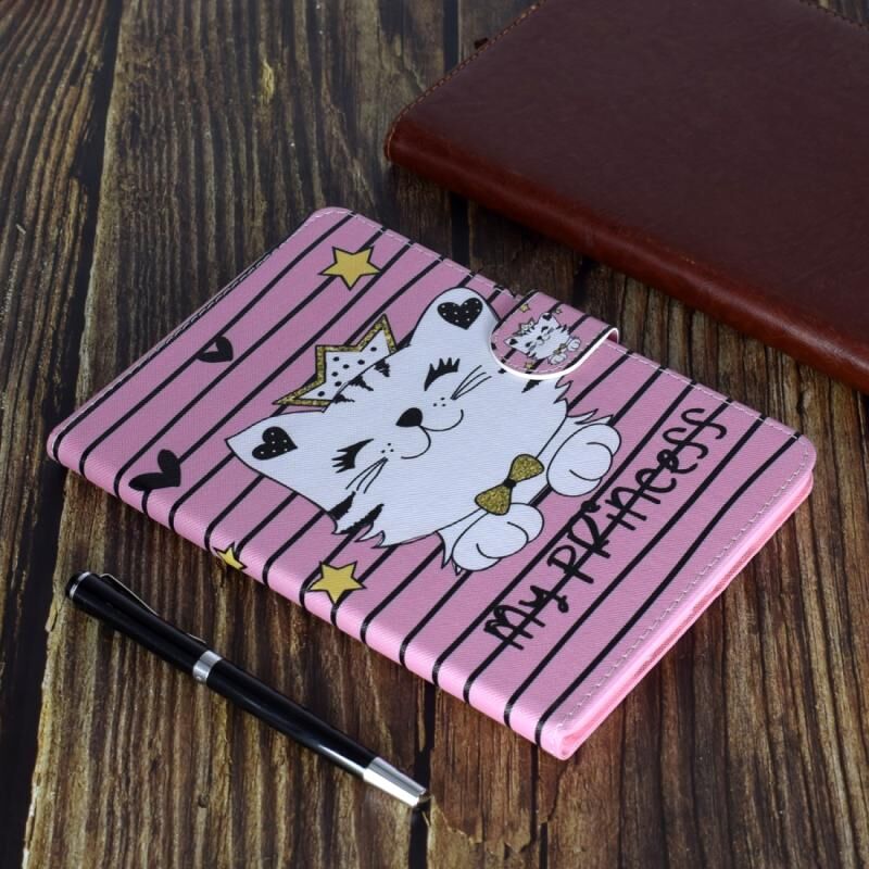 Θήκη για Samsung Galaxy Tab A 10.1 (2019) T510/T515 με πολύχρωμο σχέδιο, οριζόντια αναδιπλούμενη από δερματίνη PU με βάση στήριξης & θήκη για κάρτες (Crown Cat)