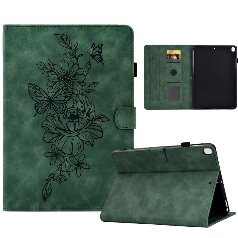 Θήκη Ταμπλέτας από Δέρμα με ανάγλυφο σχέδιο Παιονίας και Πεταλούδας για Samsung Galaxy Tab A 10.1 2019 T510 / T515 (Καφέ)