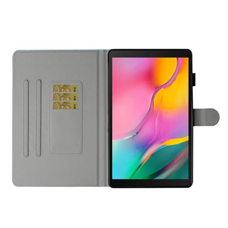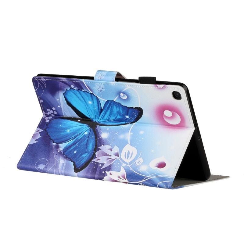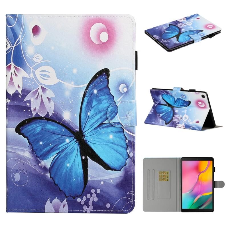 Θήκη για Samsung Galaxy Tab A 10.1 (2019) T515 / T510 με πολύχρωμο σχέδιο, οριζόντια αναδιπλούμενη από δερματίνη PU με βάση στήριξης & θήκη για κάρτες (Μπλε Πεταλούδα)