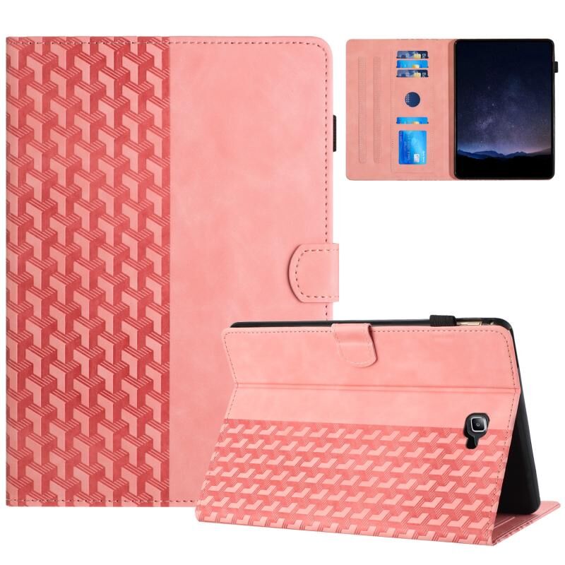 For Samsung Galaxy Tab A 10.1 T580 Building Blocks Embossed Leather Smart Tablet Case(Pink)