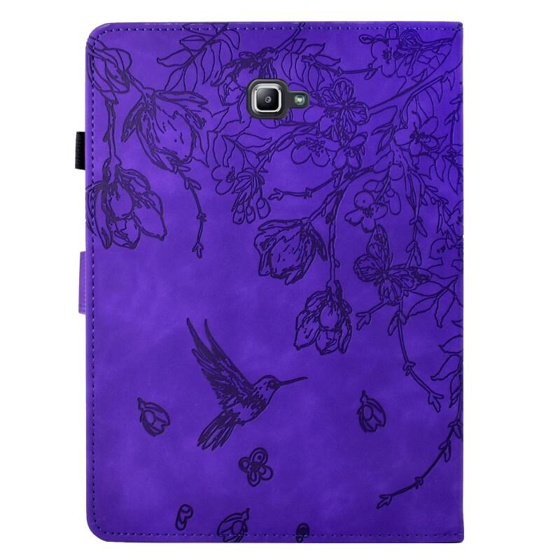 Θήκη για Samsung Galaxy Tab A 10.1 T580 με ανάγλυφα σχέδια λουλουδιών και πουλιών, από δέρμα με έξυπνη λειτουργία (Καφέ)