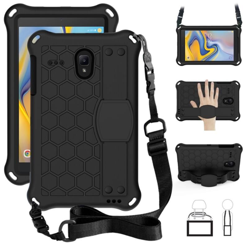 Για Samsung Galaxy Tab A 8.0 (2018) / T387 Προστατευτική θήκη με σχέδιο κυψελωτού, κατασκευασμένη από EVA + PC, ανθεκτική σε κρούσεις στις τέσσερις γωνίες, με ιμάντες (Μαύρο + Μαύρο)