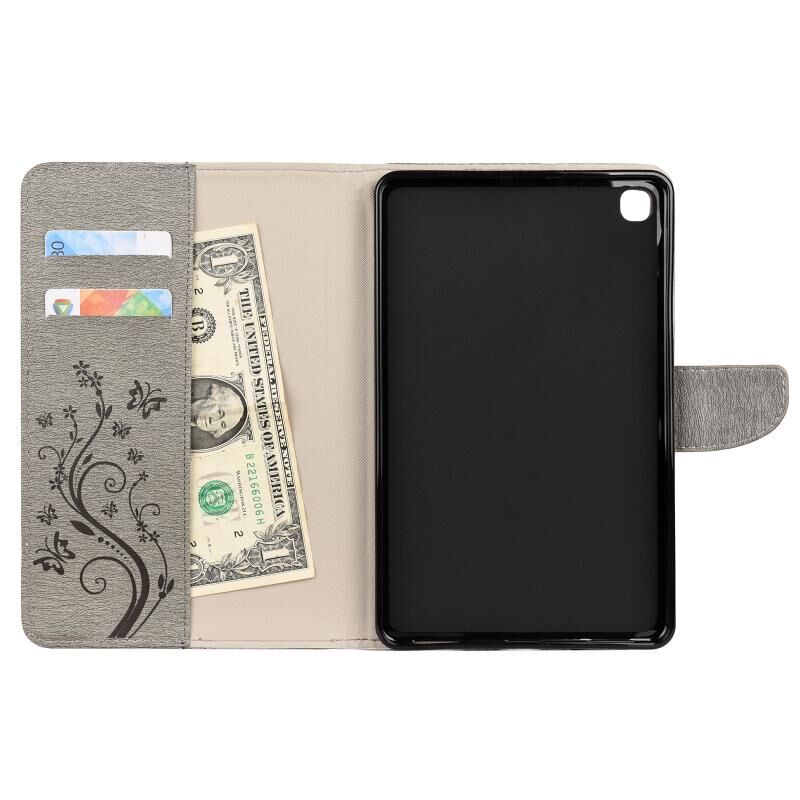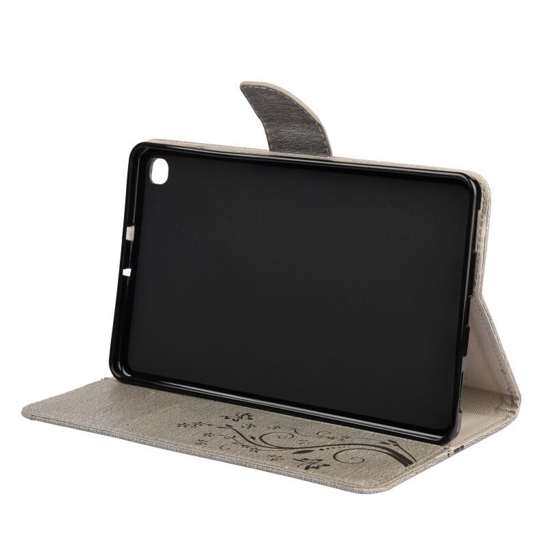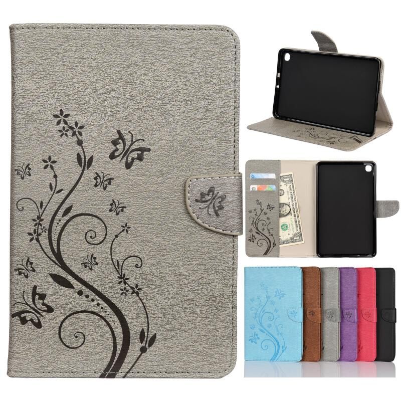 Θήκη δέρματος οριζόντιας αναδίπλωσης με σχέδιο ανάγλυφου πεταλούδας και λουλουδιών για Samsung Galaxy Tab A 8.4 (2020) T307, με βάση στήριξης & υποδοχές καρτών & πορτοφόλι (Μαύρο)