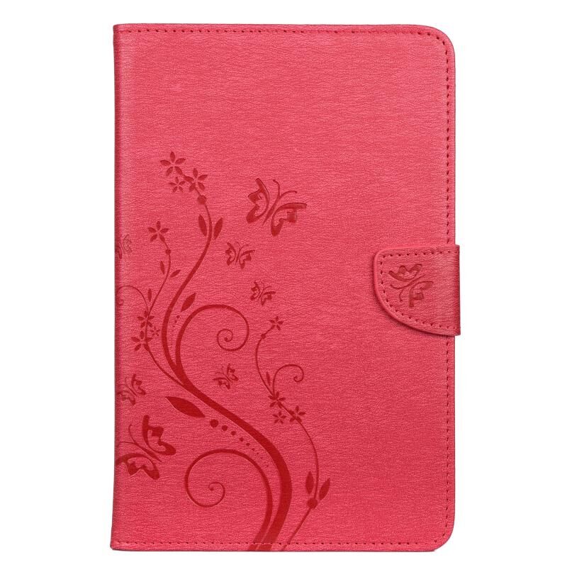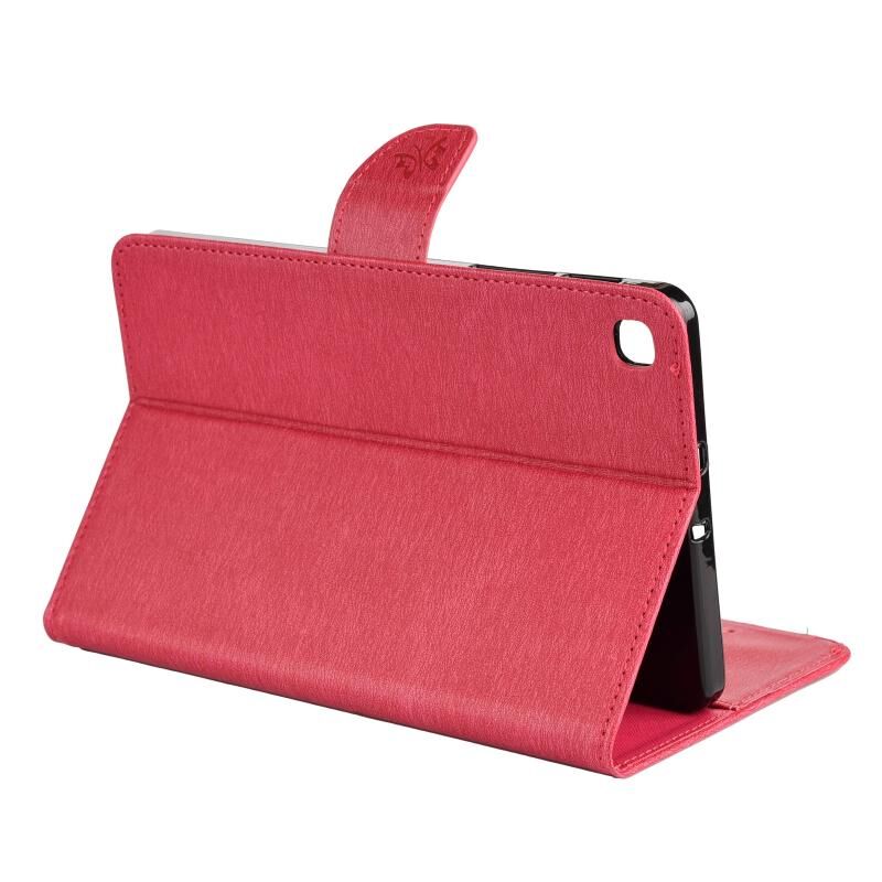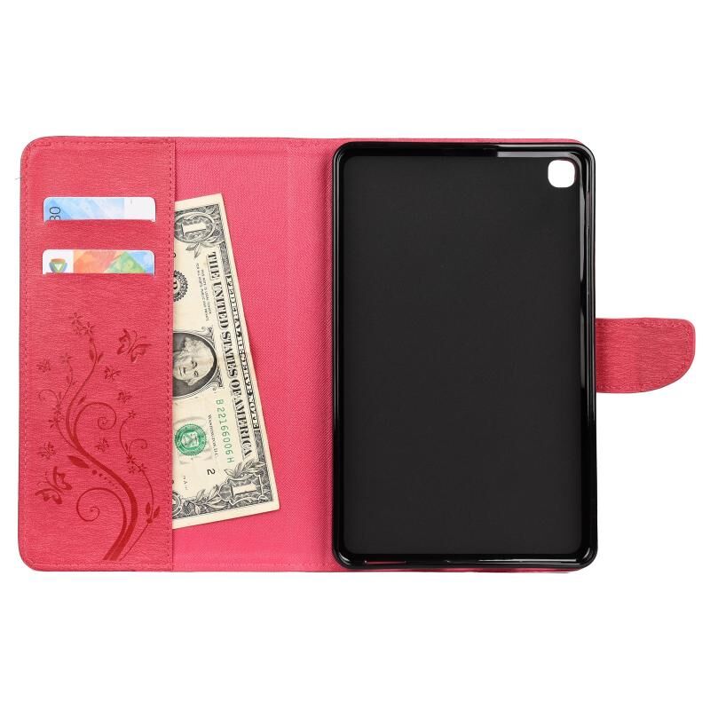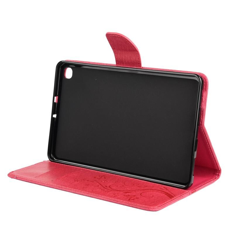 Θήκη Samsung Galaxy Tab A 8.4 (2020) T307, δερμάτινη οριζόντια με σχέδιο ανάγλυφου πεταλούδας και λουλουδιών, με βάση στήριξης & θήκες καρτών & πορτοφόλι (Ματζέντα)