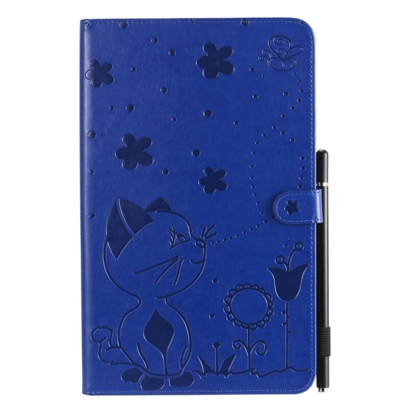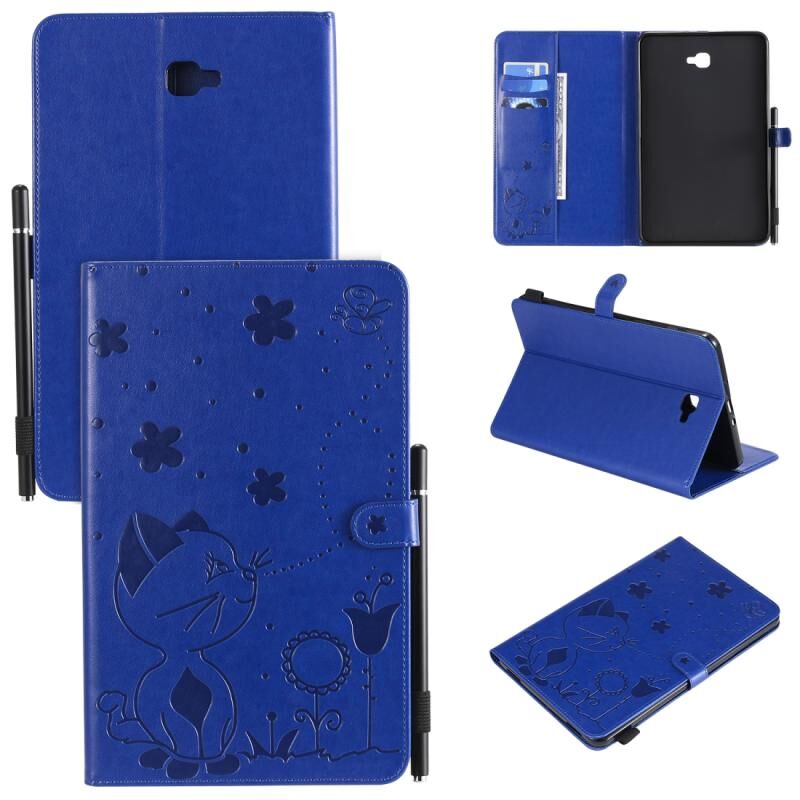 Για Samsung Galaxy Tab A10.1 (2016) T580 Θήκη δερμάτινη οριζόντια, αναδιπλούμενη, με σχέδιο ανάγλυφου Cat Bee, αντικραδασμική, προστατευτική για tablet PC με βάση στήριξης, θήκες για κάρτες, πορτοφόλι και θήκη για στυλό (Πράσινο)