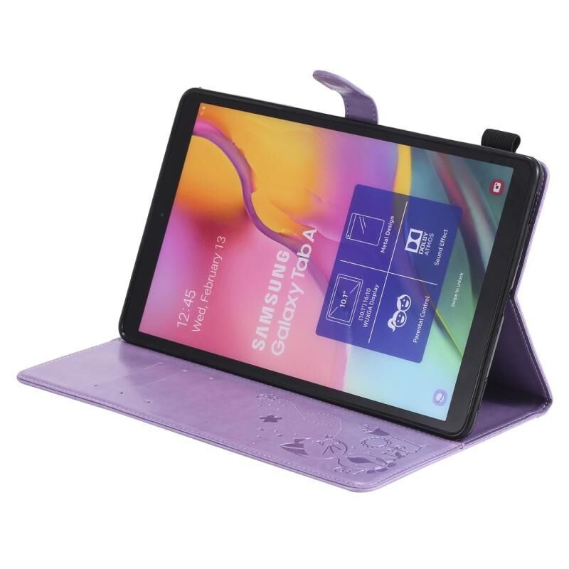 Για Samsung Galaxy Tab A10.1 (2019) T510 Θήκη δερμάτινη οριζόντια, αναδιπλούμενη, με σχέδιο ανάγλυφου Cat Bee, αντικραδασμική, προστατευτική για tablet PC με βάση στήριξης, θήκες για κάρτες, πορτοφόλι και υποδοχή για στυλό (Πράσινο)