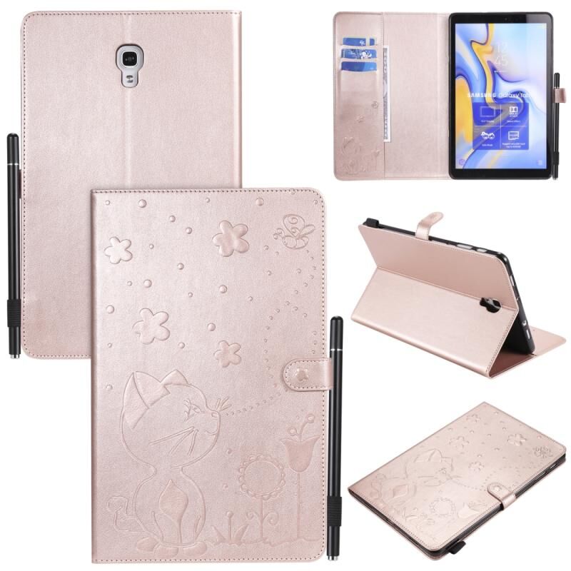 Για Samsung Galaxy Tab A10.5 T590 / T595 Θήκη δερμάτινη οριζόντια, αναδιπλούμενη, με ανάγλυφο σχέδιο Cat Bee, αντικραδασμική, προστατευτική για tablet PC με βάση στήριξης, θήκες για κάρτες, πορτοφόλι, θήκη για στυλό & λειτουργία αφύπνισης / ύπνου (Πράσινο