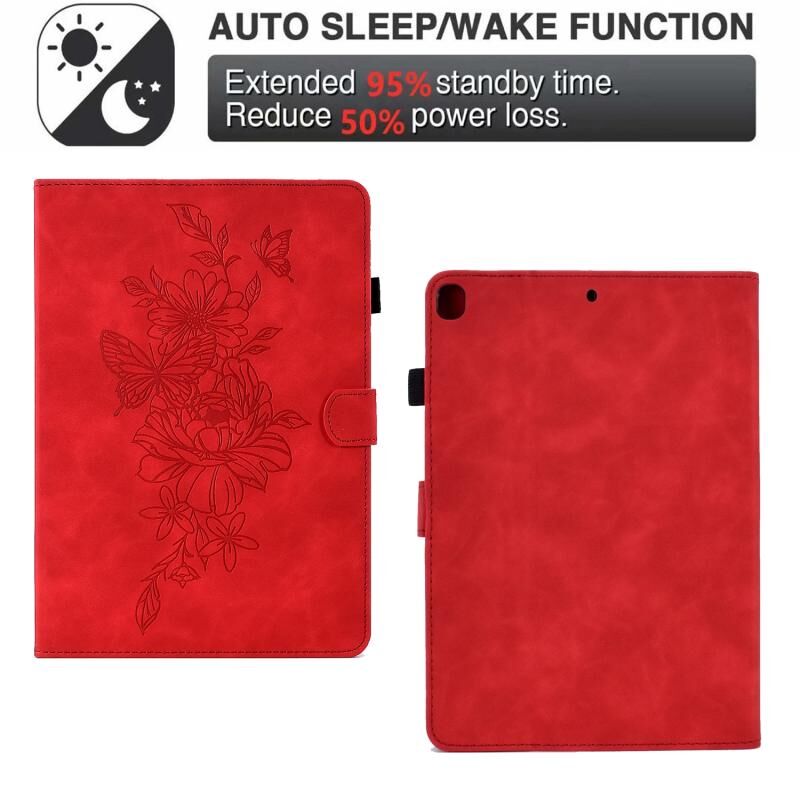 For Samsung Galaxy Tab A7 10.4 2020 T500 Peony Butterfly Embossed Leather Smart Tablet Case(Red)