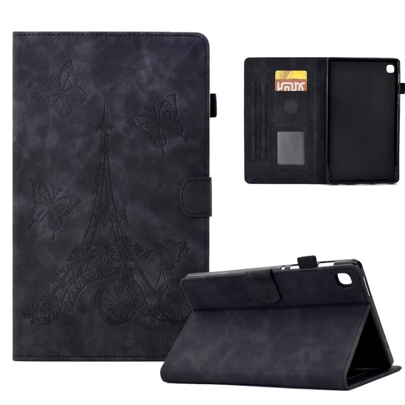 Για Samsung Galaxy Tab A7 10.4 2020 T500 Tower ανάγλυφη δερμάτινη θήκη για έξυπνο tablet (μαύρο)