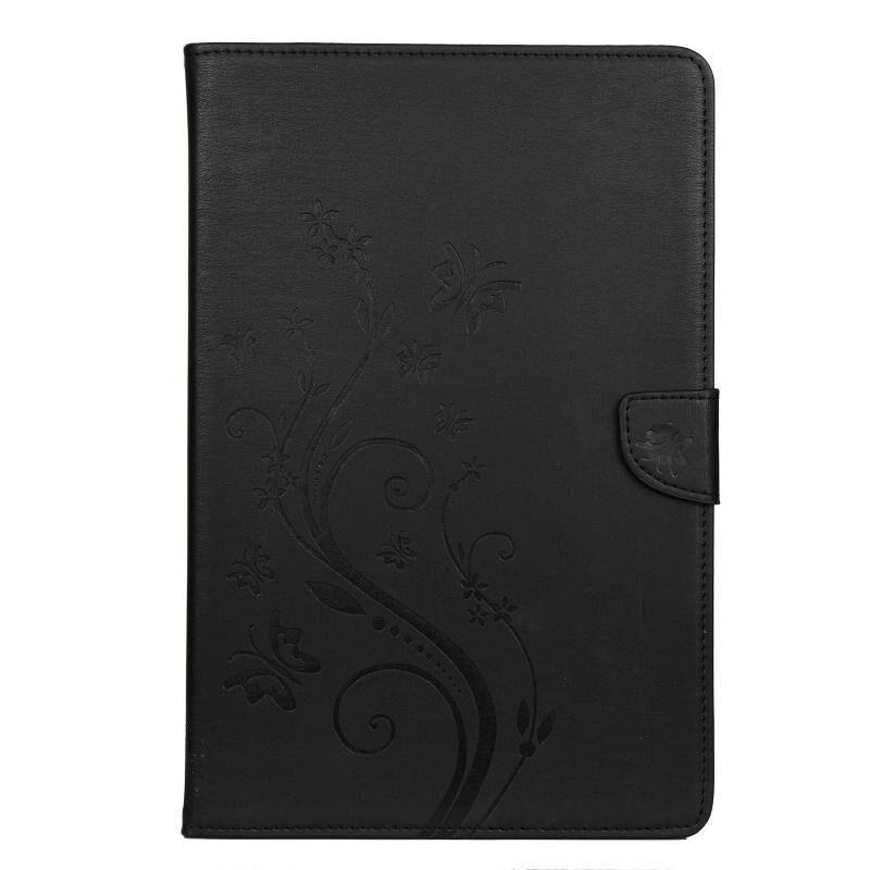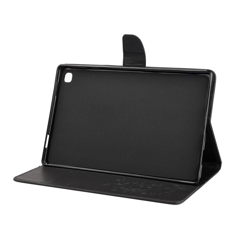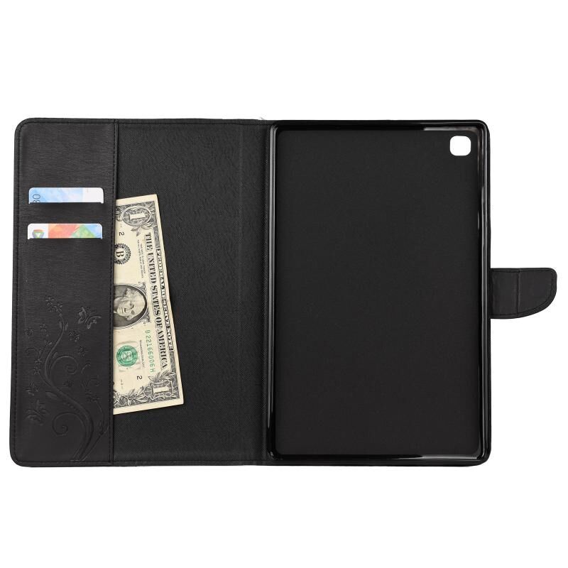Θήκη Samsung Galaxy Tab A7 10.4 (2020) T505, Δερμάτινη οριζόντια θήκη με σχέδιο ανάγλυφου πεταλούδας και λουλουδιών, με βάση στήριξης & θήκες για κάρτες & πορτοφόλι (Μαύρο)