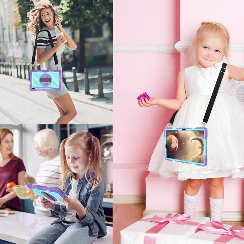 Για Samsung Galaxy Tab A7 Lite 360 μοίρες περιστροφή αντίθεση χρώμα σιλικόνης + PC Tablet υπόθεση (μωβ + πράσινο μέντα)