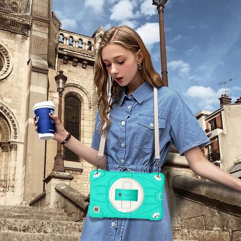 6. Detachable Shoulder Strap: The adjustable hand strap provides easy and comfortable grip, a must-have feature when you are presenting your tablet to others. The detachable and adjustable shoulder strap can help you carry your tablet more safely while hiking, traveling and other outdoor activities. This can also be used to secure your tablet to the car seat.