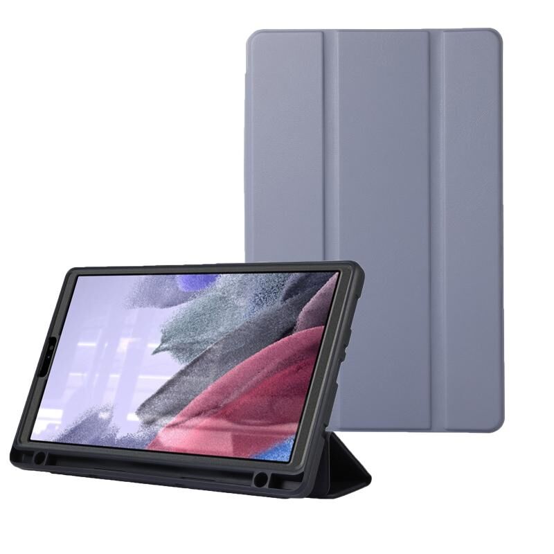 Για Samsung Galaxy Tab A7 Lite Αμιγές χρώμα 3 πτυσσόμενη δερμάτινη θήκη tablet (γκρι λεβάντα)
