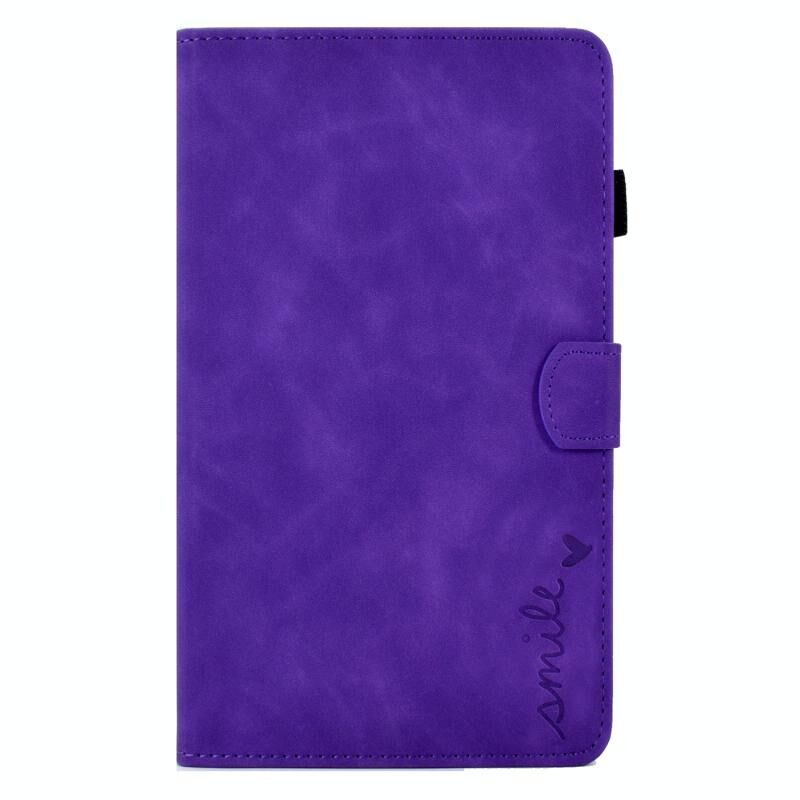 Για Samsung Galaxy Tab A7 Lite T220 ανάγλυφο χαμόγελο Flip Tablet δερμάτινη θήκη (μωβ)