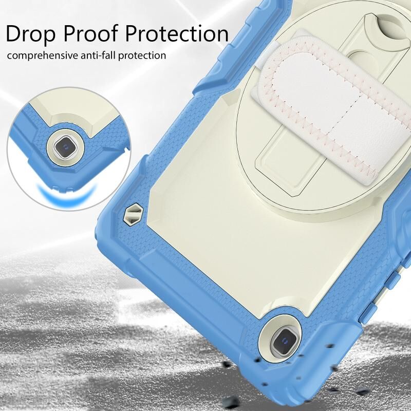 Για Samsung Galaxy Tab A7 Lite T220 Υβριδική θήκη για tablet PC σιλικόνης με λουράκι ώμου (μπεζ + κυανό μπλε)