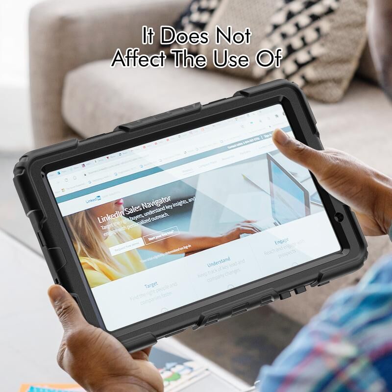 6. Αποσπώμενος ιμάντας ώμου: Ο ρυθμιζόμενος ιμάντας χειρός παρέχει εύκολο και άνετο κράτημα, ένα απαραίτητο χαρακτηριστικό όταν παρουσιάζετε το tablet σας σε άλλους. Ο αποσπώμενος και ρυθμιζόμενος ιμάντας ώμου μπορεί να σας βοηθήσει να μεταφέρετε το tablet σας με μεγαλύτερη ασφάλεια κατά την πεζοπορία, τα ταξίδια και άλλες υπαίθριες δραστηριότητες. Μπορεί επίσης να χρησιμοποιηθεί για να στερεώσετε το tablet σας στο κάθισμα του αυτοκινήτου.
