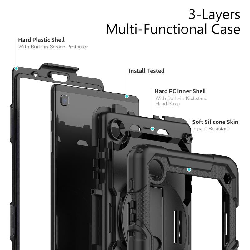 Για Samsung Galaxy Tab A7 Lite T220 Υβριδική θήκη tablet PC σιλικόνης με λουράκι ώμου (μαύρο)