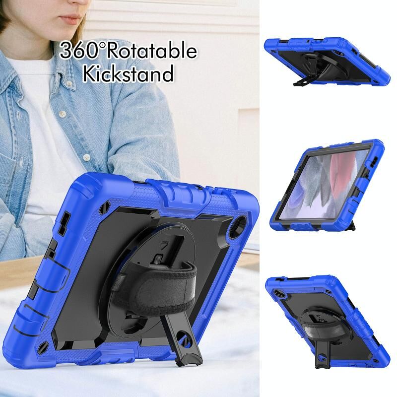 Για Samsung Galaxy Tab A7 Lite T220 Υβριδική θήκη tablet σιλικόνης με λουράκι ώμου (μαύρο + σκούρο μπλε)