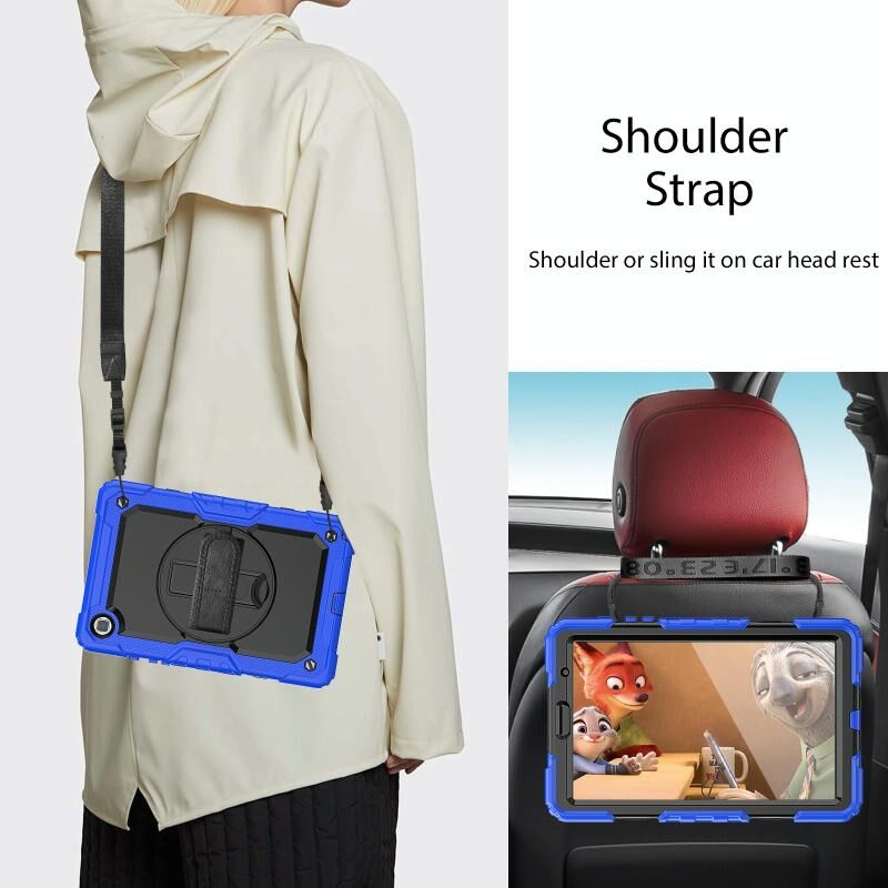 6. Αποσπώμενος ιμάντας ώμου: Ο ρυθμιζόμενος ιμάντας χειρός παρέχει εύκολο και άνετο κράτημα, ένα απαραίτητο χαρακτηριστικό όταν παρουσιάζετε το tablet σας σε άλλους. Ο αποσπώμενος και ρυθμιζόμενος ιμάντας ώμου μπορεί να σας βοηθήσει να μεταφέρετε το tablet σας με μεγαλύτερη ασφάλεια κατά την πεζοπορία, τα ταξίδια και άλλες υπαίθριες δραστηριότητες. Μπορεί επίσης να χρησιμοποιηθεί για να στερεώσετε το tablet σας στο κάθισμα του αυτοκινήτου.