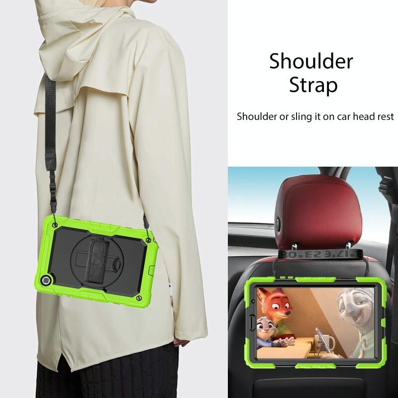 6. Αποσπώμενος ιμάντας ώμου: Ο ρυθμιζόμενος ιμάντας χειρός παρέχει εύκολο και άνετο κράτημα, ένα απαραίτητο χαρακτηριστικό όταν παρουσιάζετε το tablet σας σε άλλους. Ο αποσπώμενος και ρυθμιζόμενος ιμάντας ώμου μπορεί να σας βοηθήσει να μεταφέρετε το tablet σας με μεγαλύτερη ασφάλεια κατά την πεζοπορία, τα ταξίδια και άλλες υπαίθριες δραστηριότητες. Μπορεί επίσης να χρησιμοποιηθεί για να στερεώσετε το tablet σας στο κάθισμα του αυτοκινήτου.
