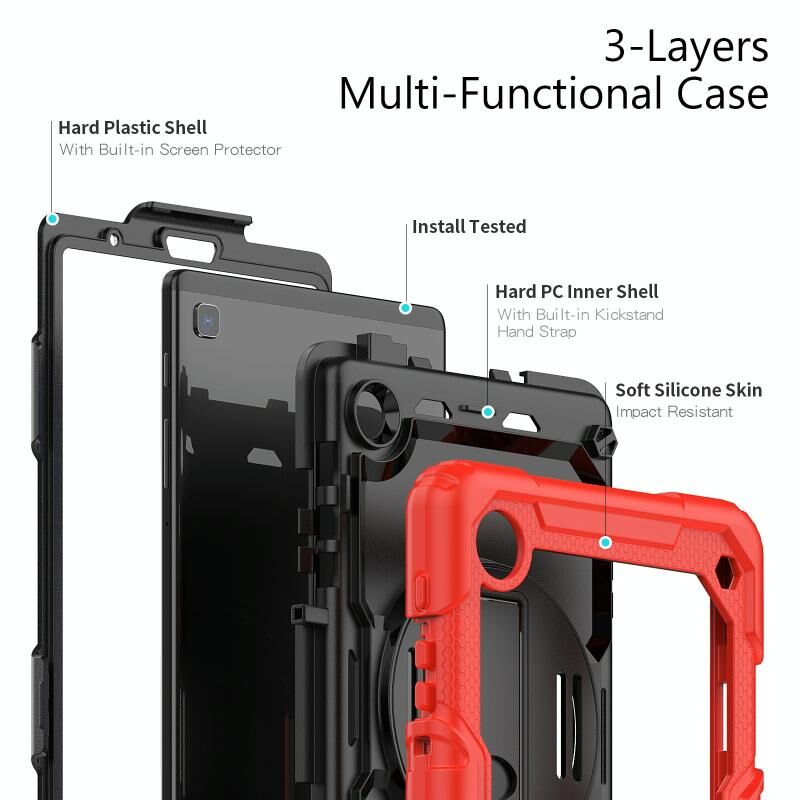 Για Samsung Galaxy Tab A7 Lite T220 Υβριδική θήκη tablet σιλικόνης με λουράκι ώμου (κόκκινο)