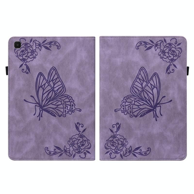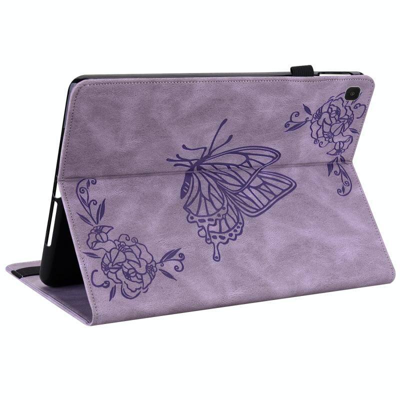 Θήκη ταμπλέτας από δέρμα με ανάγλυφο σχέδιο πεταλούδας και λουλουδιών για Samsung Galaxy Tab A7 Lite T220/T225 (Μωβ)