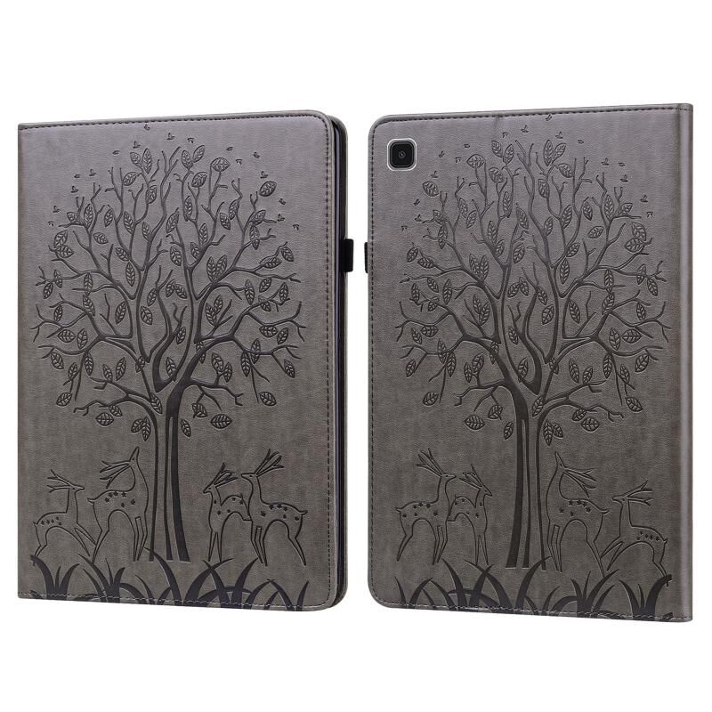 Για Samsung Galaxy Tab A7 Lite T220 δέντρο & ελάφια μοτίβο ανάγλυφη δερμάτινη θήκη tablet (γκρι)