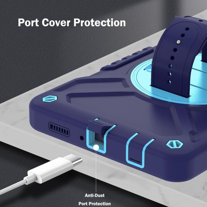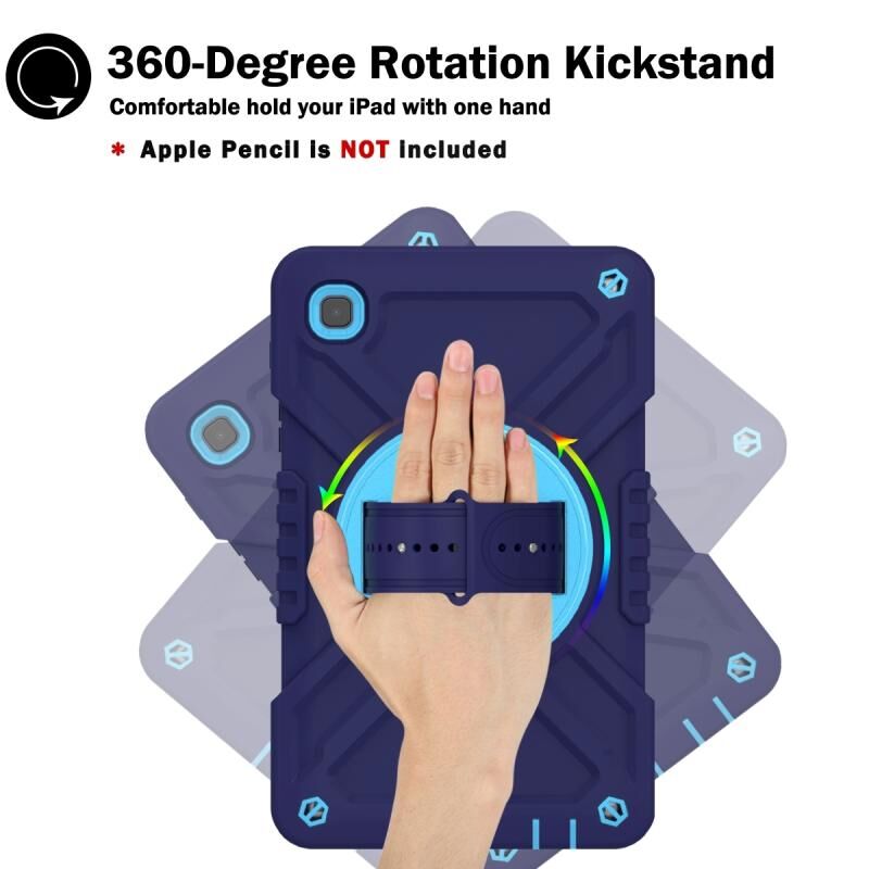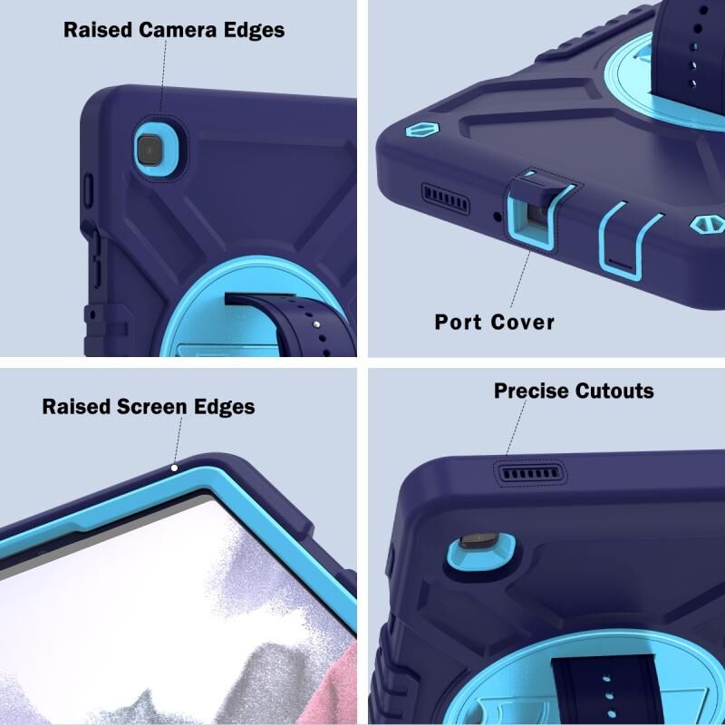 Για Samsung Galaxy Tab A7 Lite X Rotation PC υβριδική θήκη σιλικόνης για tablet με λουράκι (Navy Sky Blue)