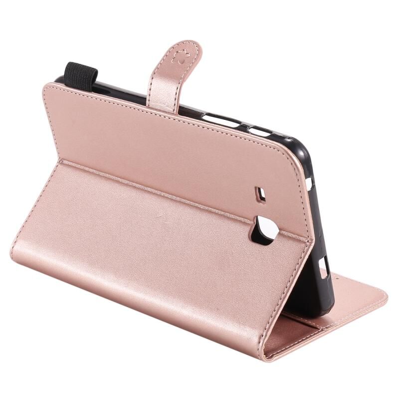 Για Samsung Galaxy Tab A7.0 (2016) T280 Θήκη προστασίας από δέρμα με οριζόντιο άνοιγμα, με ανάγλυφο σχέδιο Cat Bee, αντικραδασμική για tablet PC, με βάση στήριξης, θήκες για κάρτες, πορτοφόλι, θήκη για στυλό & λειτουργία αφύπνισης / ύπνου (Χρυσό Ρόδι).