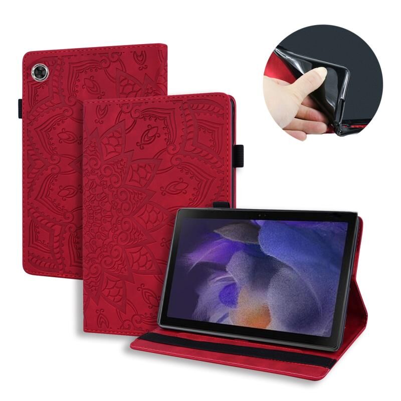 Για Samsung Galaxy Tab A8 10.5 2021 Calf Texture Embossed Flip Leather Tablet Case (κόκκινο)