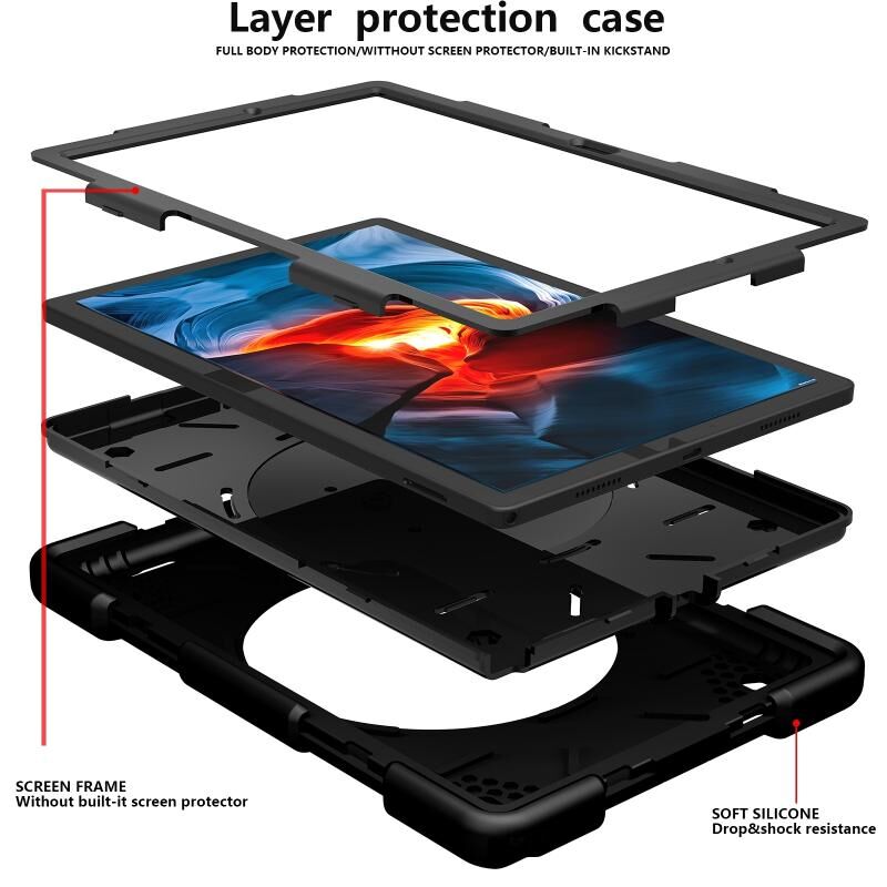 Για Samsung Galaxy Tab A8 10.5 2021 σιλικόνη + PC Full Body Protection Tablet Case με θήκη & λουράκι (Μαύρο)