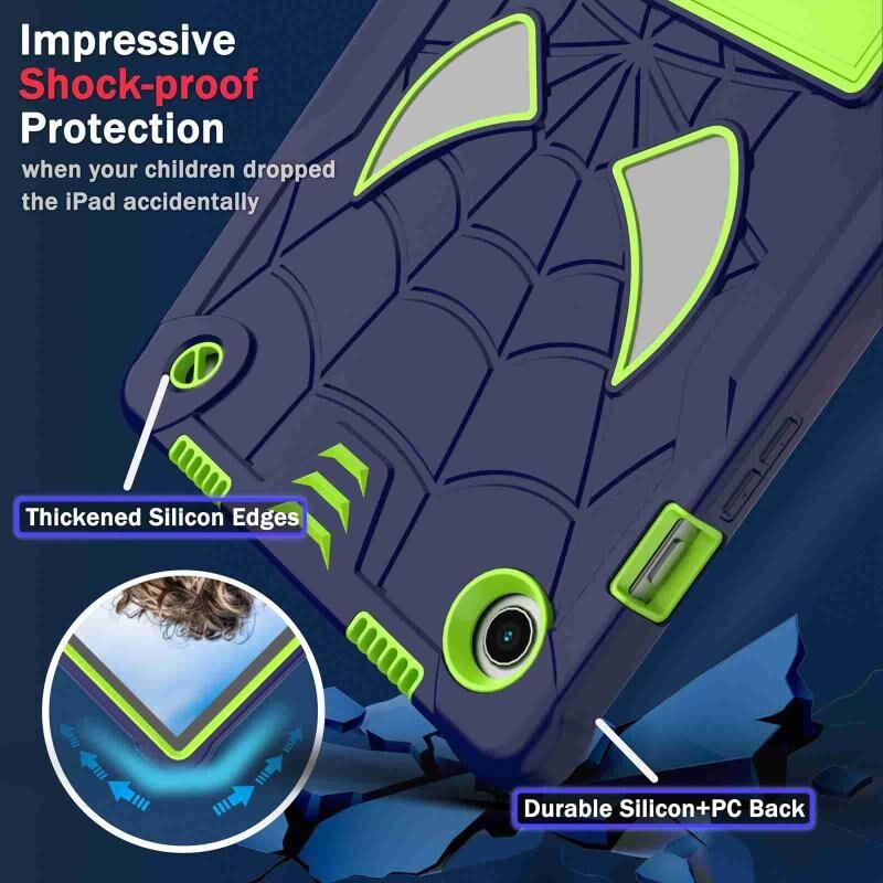 For Samsung Galaxy Tab A8 10.5 2021 Spider Texture Silicone Hybrid PC Tablet Case with Shoulder Strap(Navy Blue + Yellow Green)