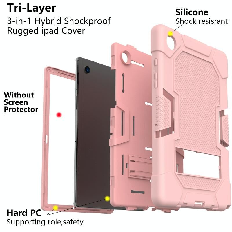 For Samsung Galaxy Tab A8 10.5 2021 X200 Contrast Color Robot Silicone + PC Tablet Case(Rose Gold)