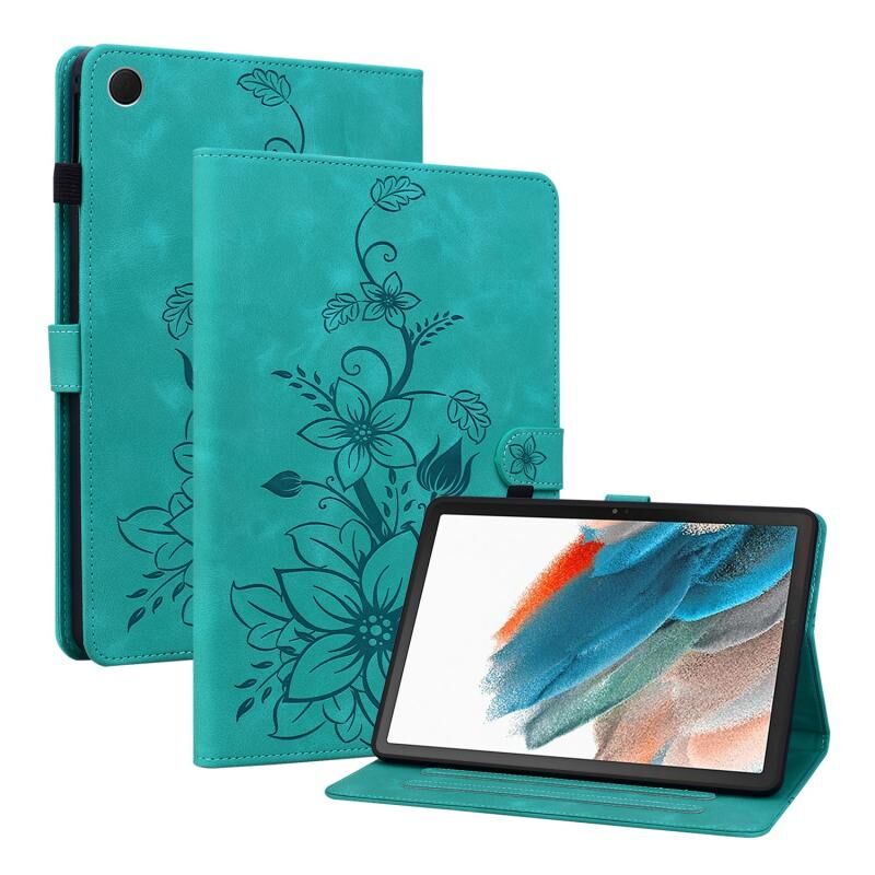 Θήκη Smart Tablet από Δέρμα με Χαρακτό Λίλιο για Samsung Galaxy Tab A8 10.5 2022 (Πράσινο)