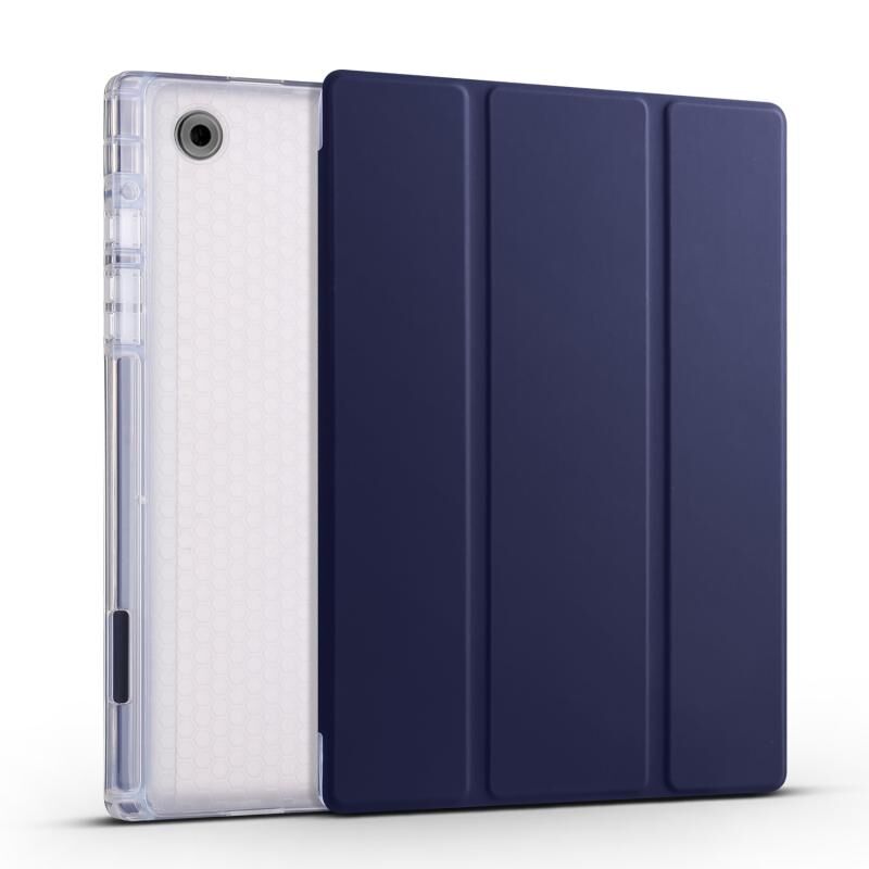Για Samsung Galaxy Tab A8 X200 Smart 3-folding Διαφανής Honeycomb TPU + Δερμάτινη θήκη tablet (σκούρο μπλε)