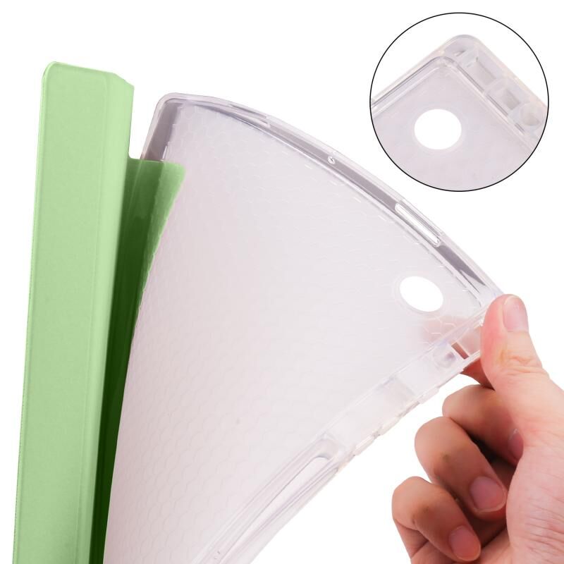 Για Samsung Galaxy Tab A8 X200 Smart 3-folding Διαφανής κηρήθρα TPU + Δερμάτινη θήκη tablet (Matcha Green)