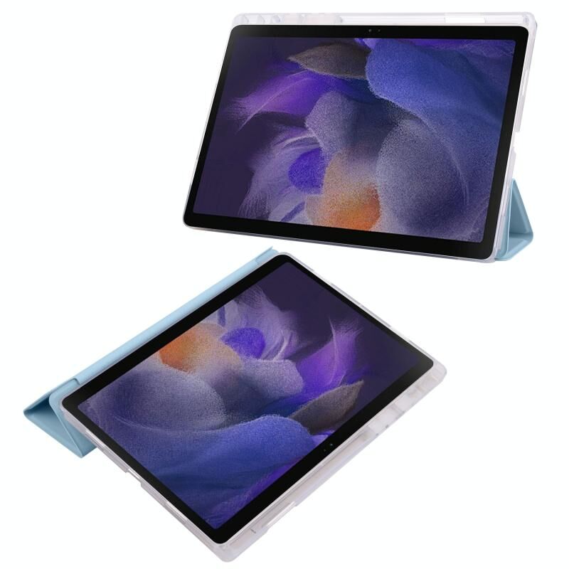 Για Samsung Galaxy Tab A8 X200 Smart 3-folding Διαφανής Honeycomb TPU + Δερμάτινη θήκη tablet (Λευκό Ice Blue)