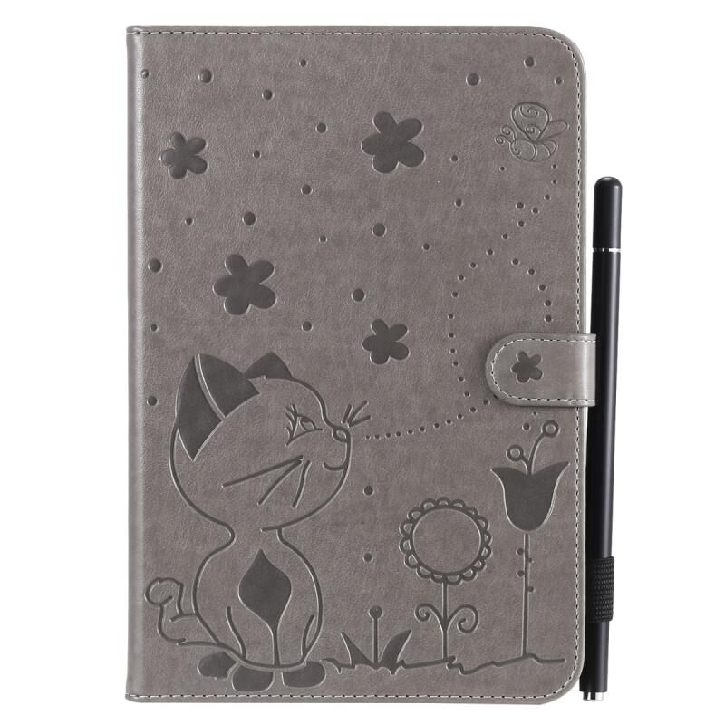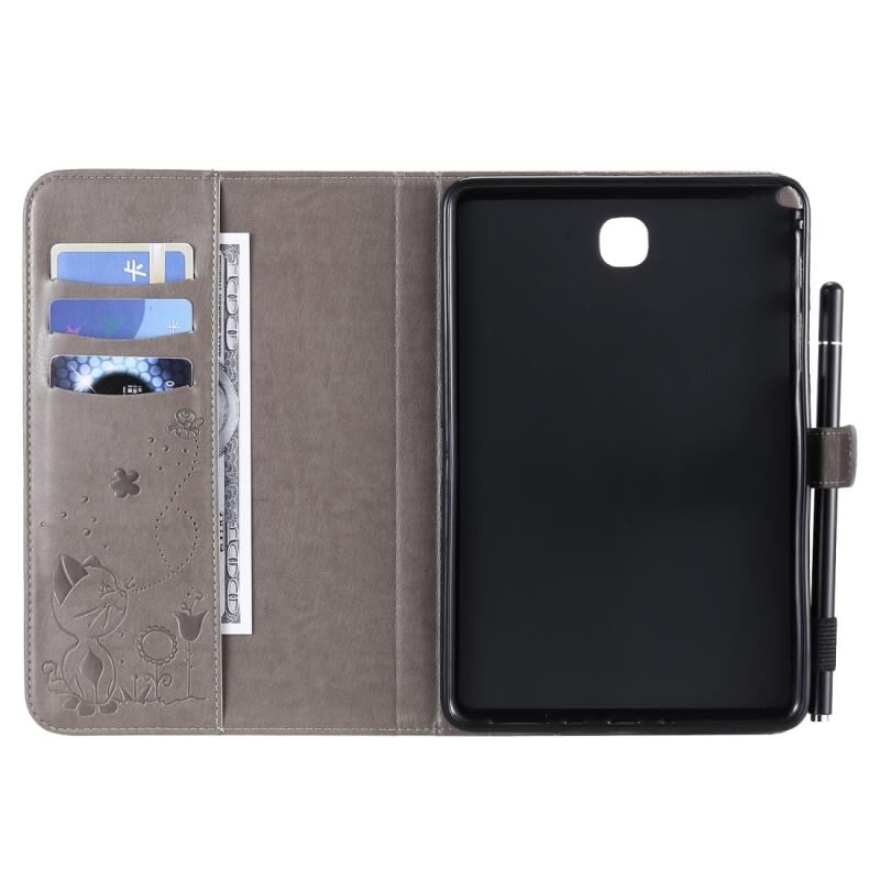 Για Samsung Galaxy Tab A8.0 (2015) T350 Θήκη δερμάτινη οριζόντια, αναδιπλούμενη, με σχέδιο ανάγλυφου Cat Bee, αντικραδασμική, προστατευτική για tablet PC με βάση στήριξης, θήκες για κάρτες, πορτοφόλι, θήκη για στυλό & λειτουργία αφύπνισης / ύπνου (Πράσινο