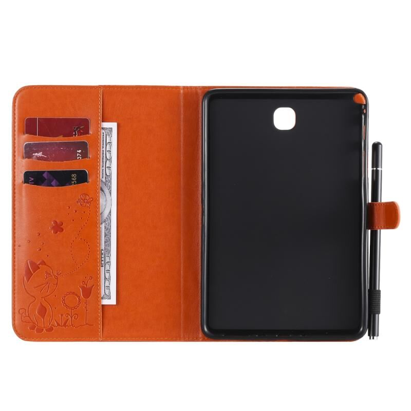 Για Samsung Galaxy Tab A8.0 (2015) T350 Θήκη δερμάτινη οριζόντια, αναδιπλούμενη, με σχέδιο ανάγλυφου Cat Bee, αντικραδασμική, προστατευτική για tablet PC με βάση στήριξης, θήκες για κάρτες, πορτοφόλι, θήκη για στυλό & λειτουργία αφύπνισης / ύπνου (Πράσινο