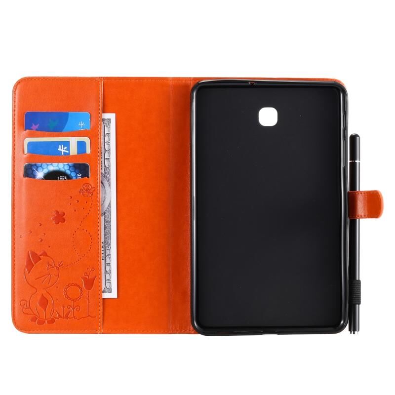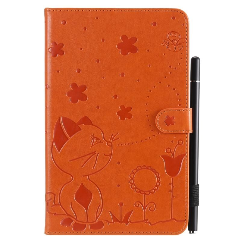 Για Samsung Galaxy Tab A8.0 (2018) T387 Θήκη δερμάτινη οριζόντια, αναδιπλούμενη, με σχέδιο ανάγλυφου Cat Bee, αντικραδασμική, προστατευτική για tablet PC με βάση στήριξης, θήκες για κάρτες, πορτοφόλι και θήκη για στυλό (Πράσινο)