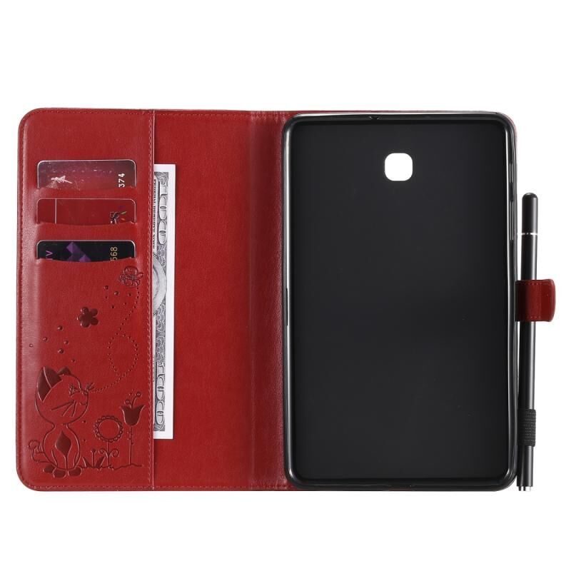 Για Samsung Galaxy Tab A8.0 (2018) T387, θήκη προστασίας οριζόντιας αναδίπλωσης από δέρμα με ανάγλυφο σχέδιο Cat Bee, αντικραδασμική για tablet PC, με βάση στήριξης, θήκες για κάρτες, πορτοφόλι και θήκη για στυλό (Κόκκινο).