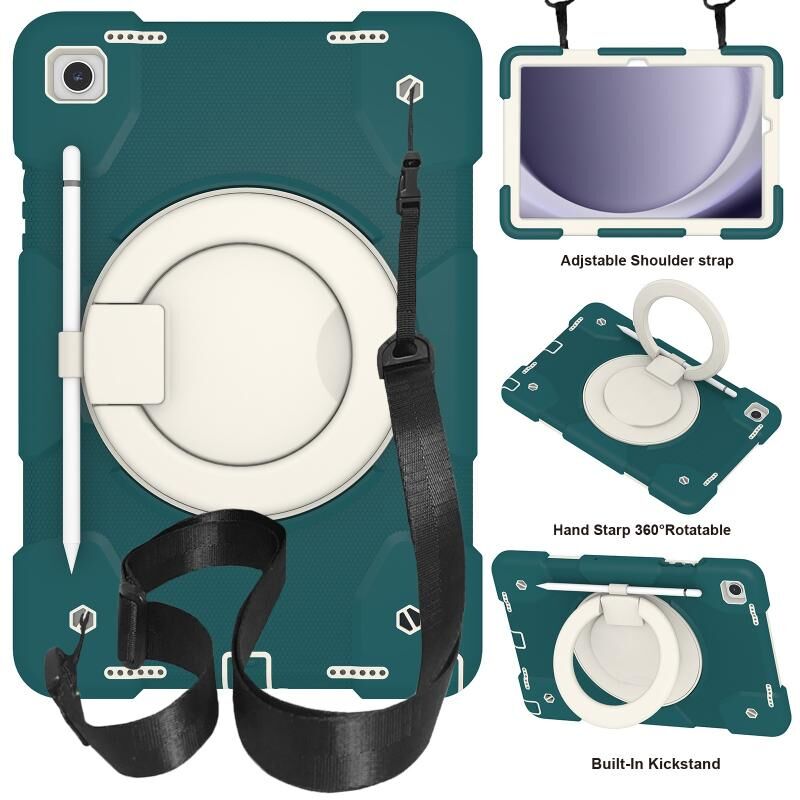 Για Samsung Galaxy Tab A9+ 11 2023 Υβριδική θήκη για tablet PC σιλικόνης με ιμάντα ώμων (Μαύρο πράσινο)