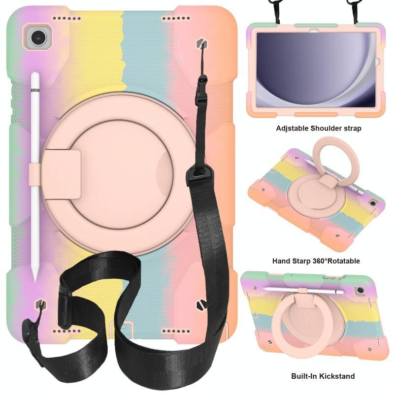 Για Samsung Galaxy Tab A9+ 11 2023 σιλικόνης υβριδική θήκη tablet PC με ιμάντα ώμους (πολύχρωμο ροζ χρυσό)