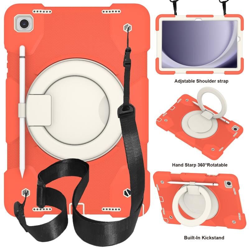 Για Samsung Galaxy Tab A9+ 11 2023 Υβριδική θήκη για tablet PC σιλικόνης με ιμάντα ώμων (Coral Orange)