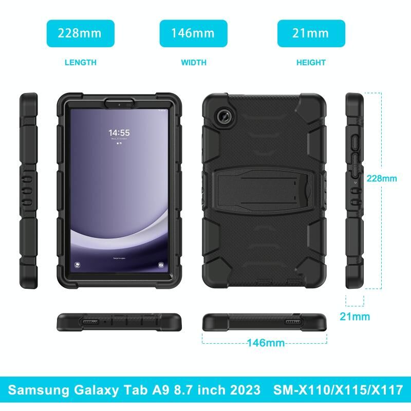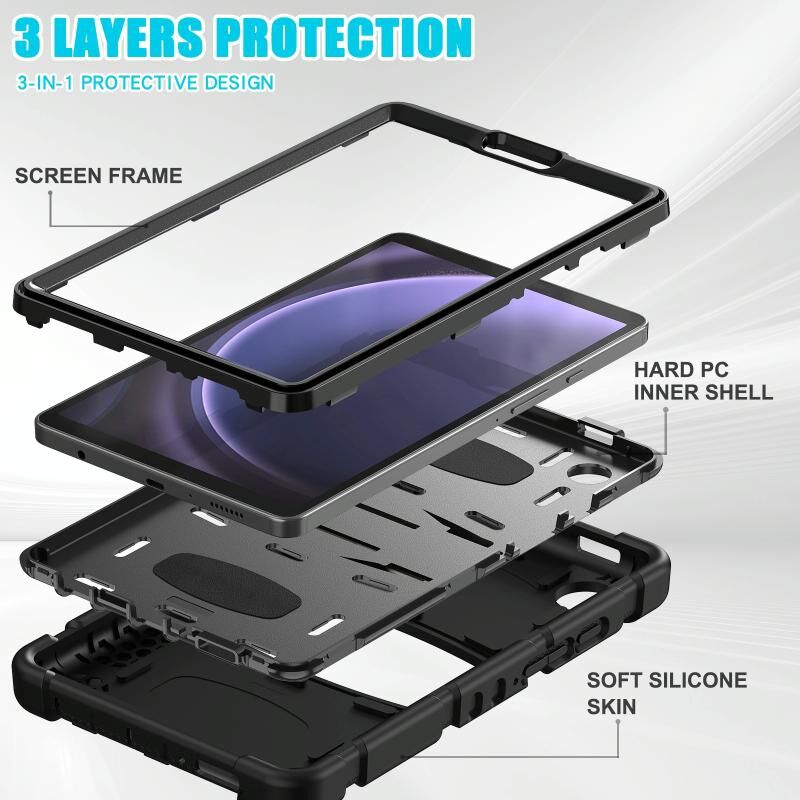 Για Samsung Galaxy Tab A9 3-Layer Protection Screen Frame + PC + Σιλικόνη Shockproof Combination Tablet Case με θήκη (Μαύρο+Μαύρο)