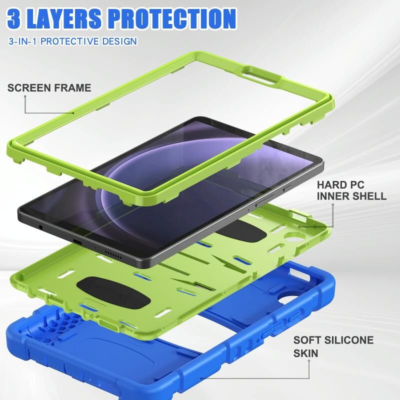 Για Samsung Galaxy Tab A9 3-Layer Protection Screen Frame + PC + Σιλικόνη Shockproof Συνδυασμός θήκη Tablet με θήκη (μπλε+Lime)