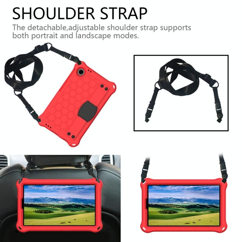 Για Samsung Galaxy Tab A9 8.7 X110/X115 Honeycomb EVA υβριδική θήκη tablet PC με λουράκι (κόκκινο + μαύρο)