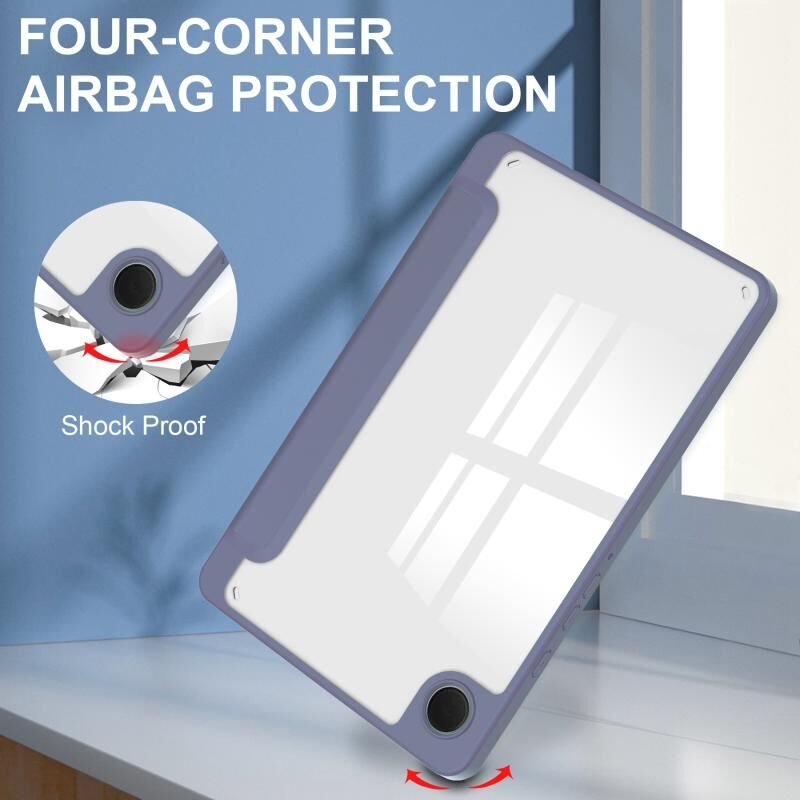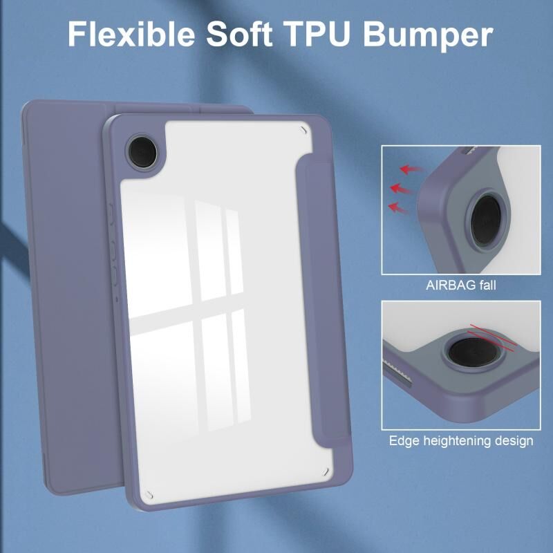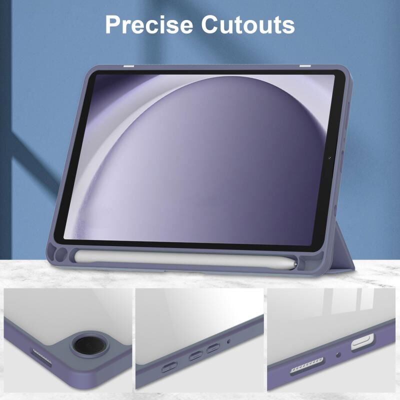 Για Samsung Galaxy Tab A9 Ακρυλική 3πτυχη δερμάτινη θήκη tablet με υποδοχή για στυλό (λεβάντα)