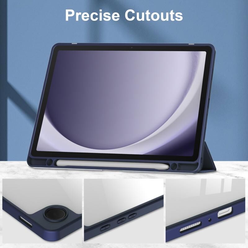 For Samsung Galaxy Tab A9+ Acrylic 3-folding Smart Leather Tablet Case with Pen Slot(Dark Blue)